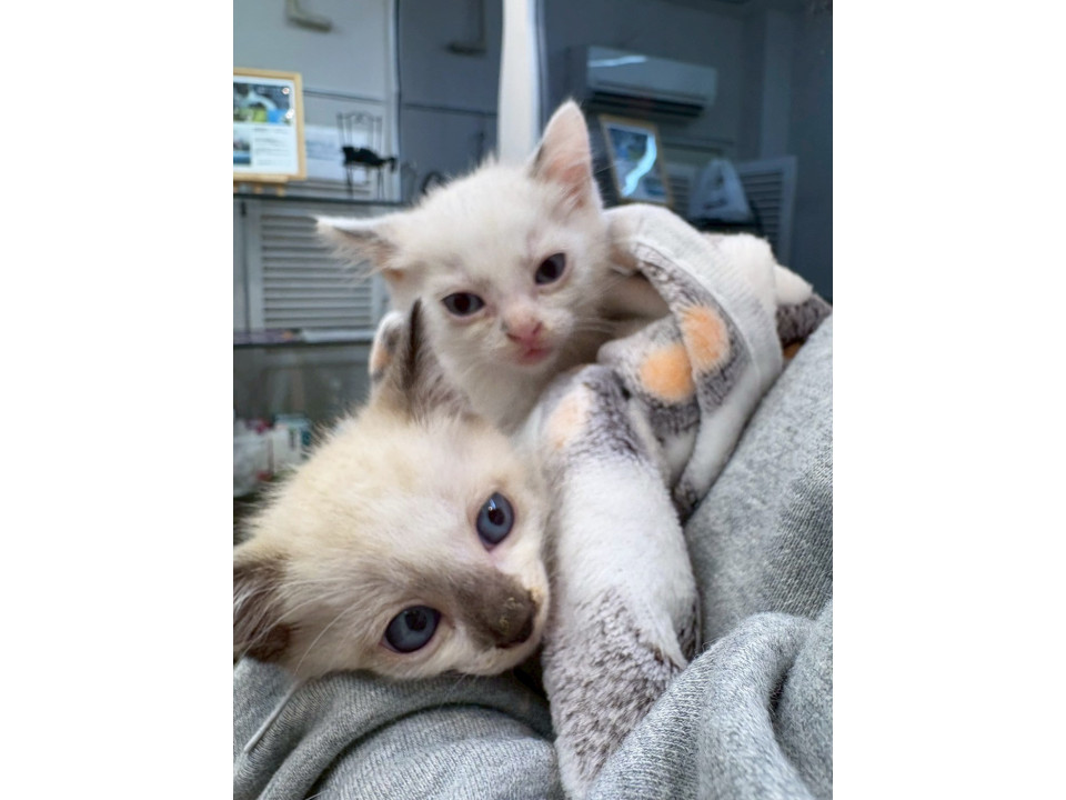 動物愛護センターから引き出した、3匹兄妹です。シトロン君と、ペシェちゃんは、ラグドール?シャム風の毛色をしています。