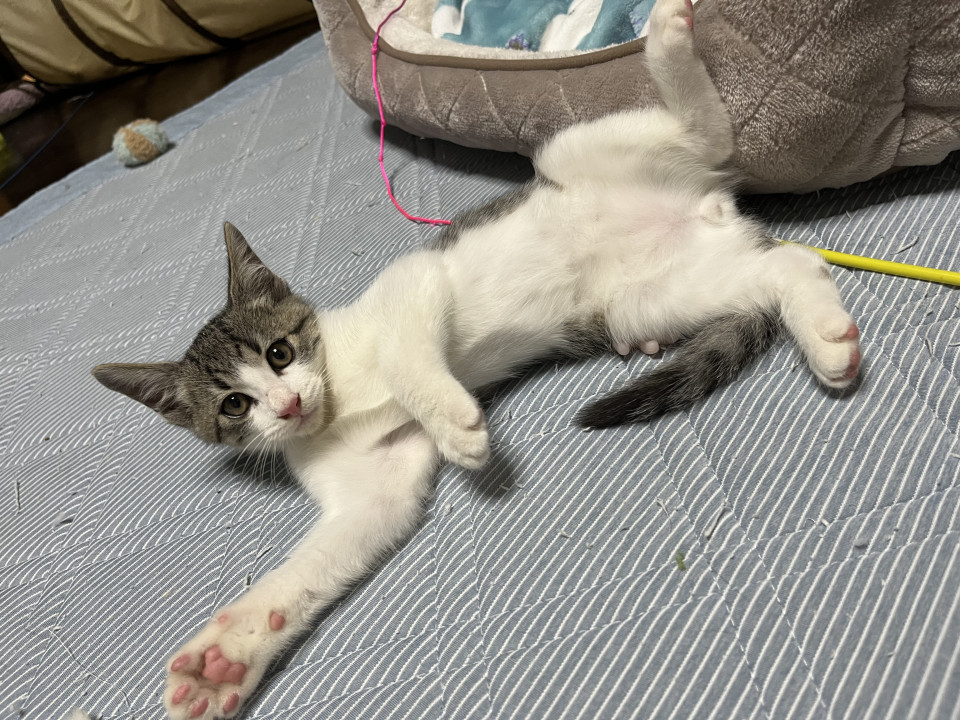 人に甘えるのも、他の猫と遊ぶのも大好き、天真爛漫な男の子です。