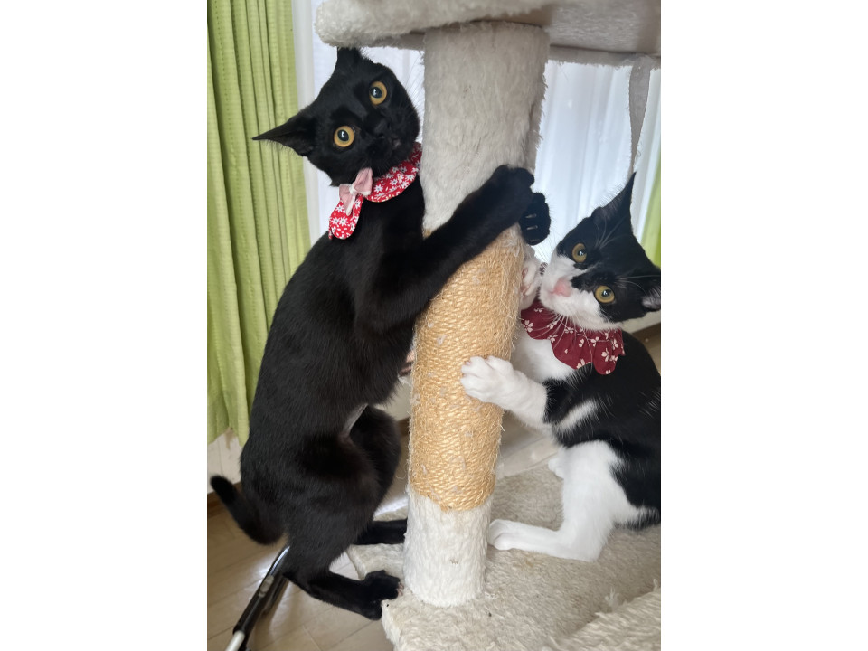 人懐っこくて、撫でるとゴロゴロ言って喜びます。人の側が好きで、近くで遊んでいます。
