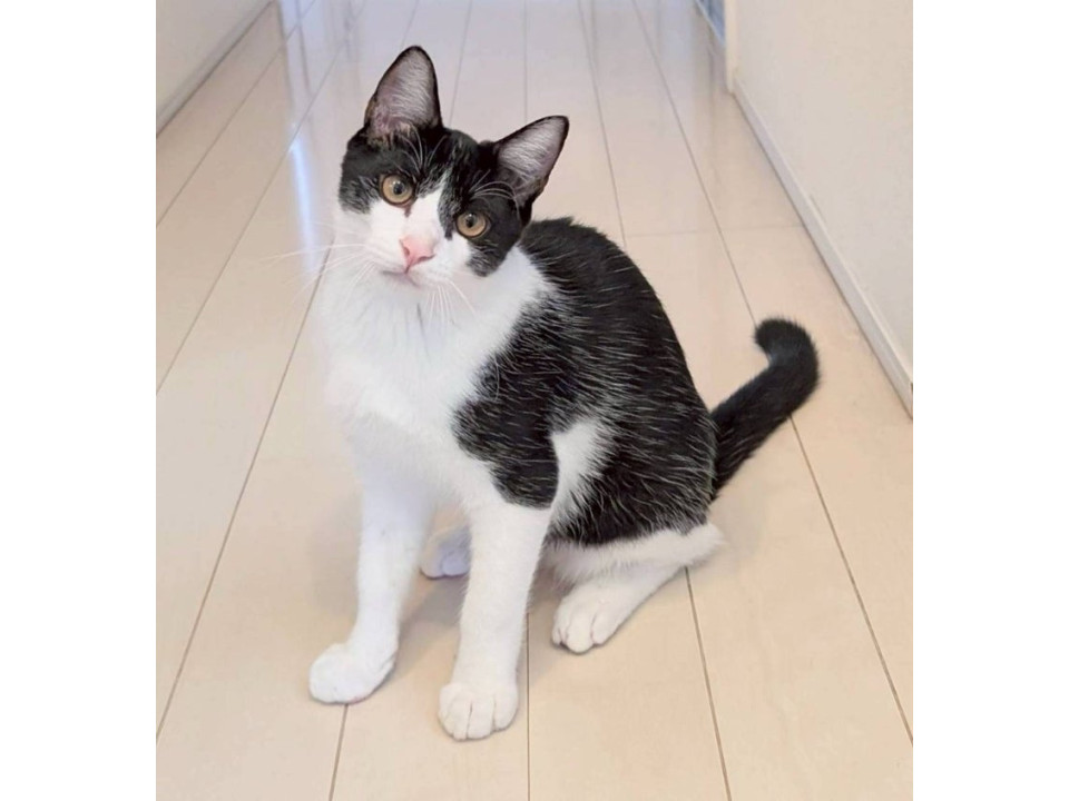 イケメンのハチワレ黒白子猫ちゃんです。