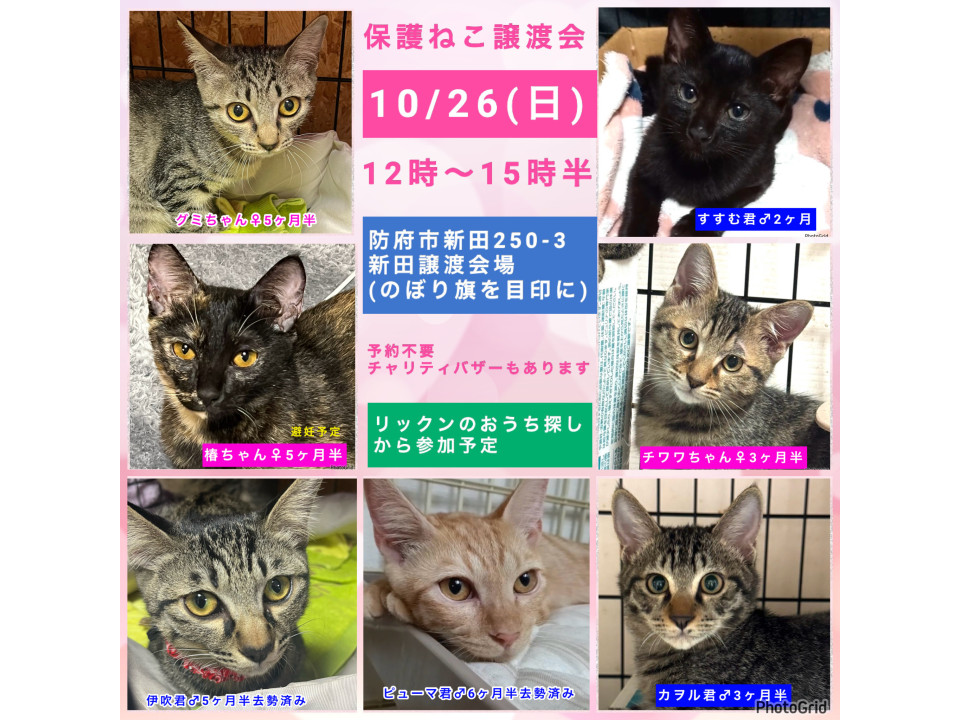 10/26防府市新田譲渡会場での譲渡会に参加予定です。
