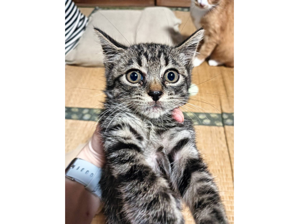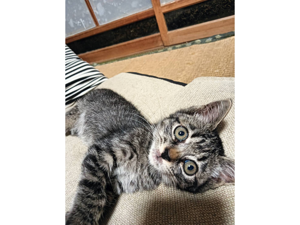 バス亭の建具の根元で縮こまって鳴いているのを保護しました。保護時は右手付け根をケガしており歩くのもやっとでしたが、