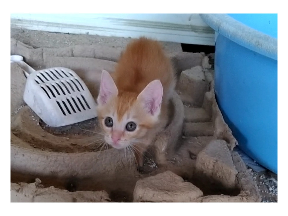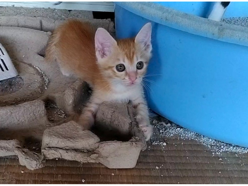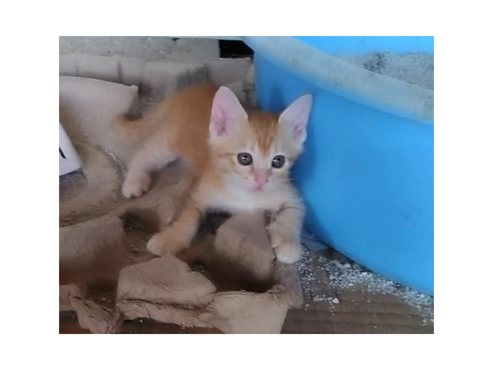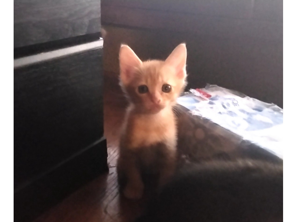 黄金色の美しい毛色です。4兄弟のうち3匹が茶トラ。よく似てなかなか見分けが付きません。兄弟の中では一番大きいです。生後1ヶ月半ほどです。