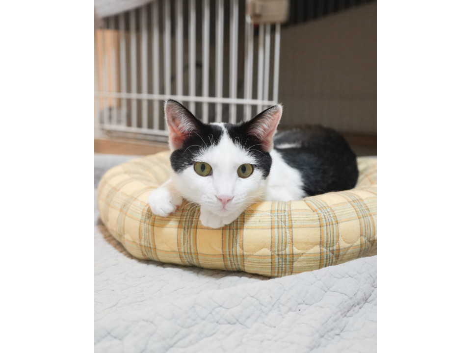 綺麗なぱっつん前髪模様の女の子です!人見知り、場所見知りがありますが、馴れると抱っこもできます♪