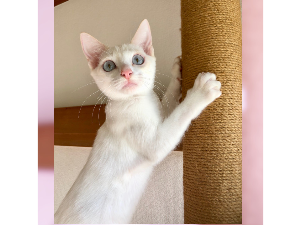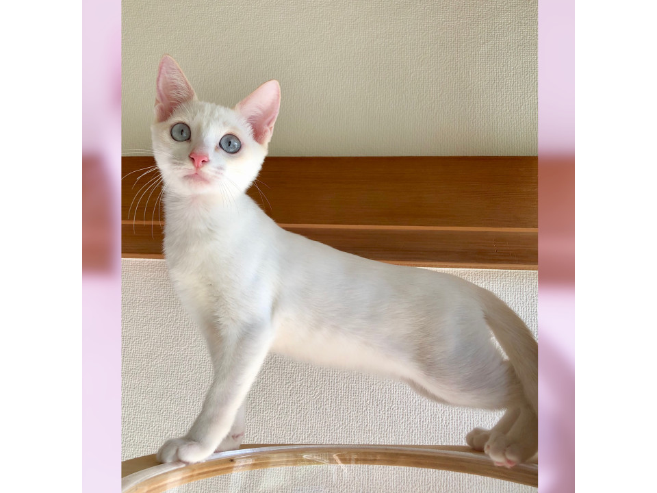 スラリと細身体型、吸い込まれそうなブルーアイにポイントカラー。成長と共にポイントカラーは変化します。これからの成長が楽しみなおチビちゃん。