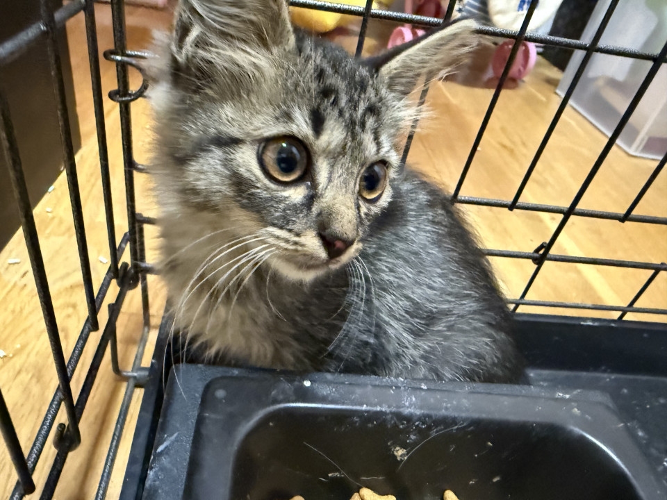 この子猫が、成猫たちの喧騒から離れ、一匹でのんびりと、里親様からの愛情を独り占めできる穏やかな環境で過ごしてほしいと願い、今回、里親様を募集させていただくことになりました。
