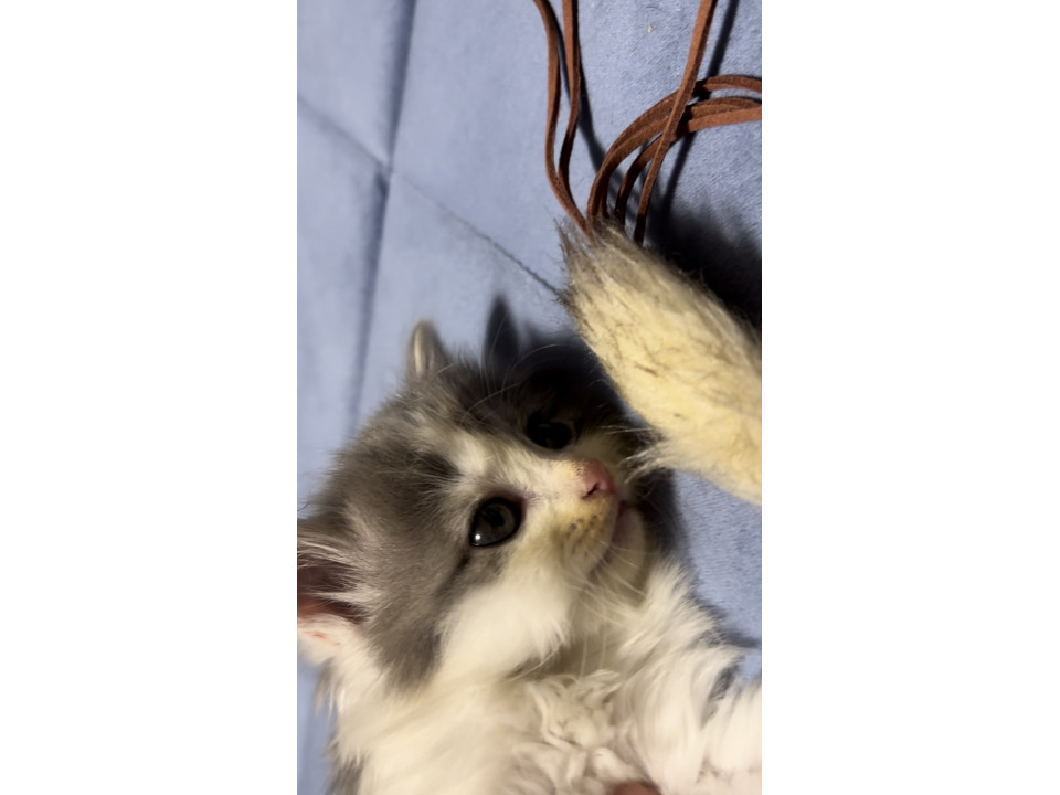 顔はおっとりした感じのつくりですが、子猫特有の青い目がよく似合っています