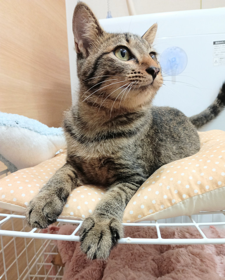 まだ子猫ですので、十分に遊んであげられる時間のあるご家庭や、優しい先住猫のいるご家庭を希望しています。