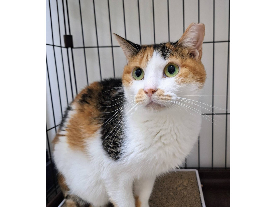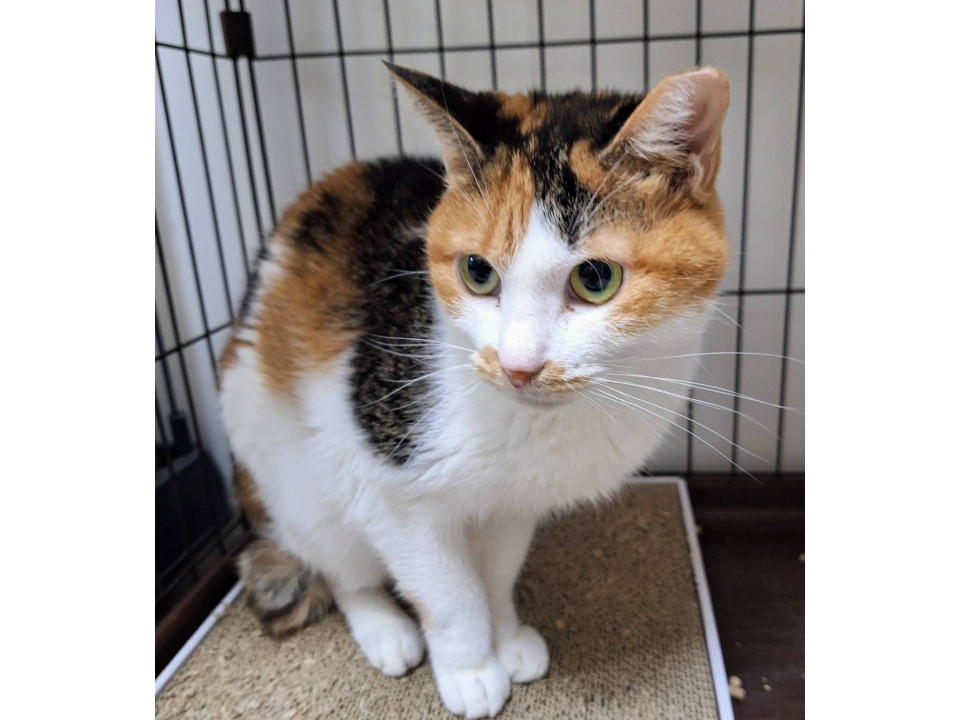 三色の毛色がバランス良く美しいザ・三毛猫のすずのちゃん。