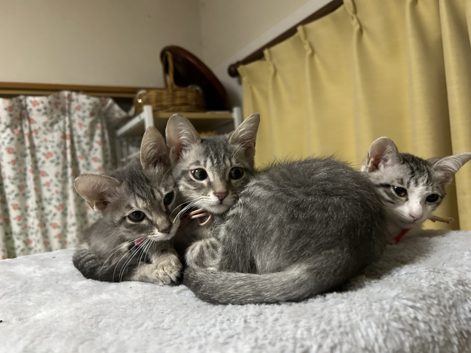 未不妊のままお世話されて子猫が4匹生まれていると相談があり、保護主が親子で引き取り保護されました