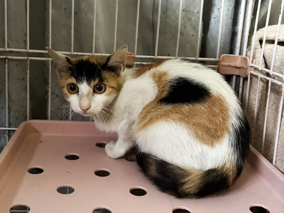 【性別:年齢:被毛】♀:4ヵ月:三毛猫