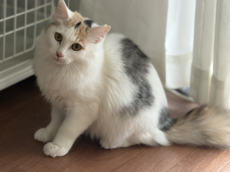 慣れると喉を鳴らしてくれますが自分から擦り寄ってくるタイプではないです。三毛猫特有の気の強さもありますがとてもかわいい子です