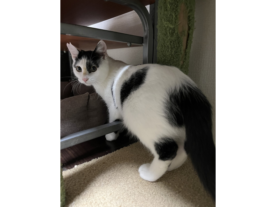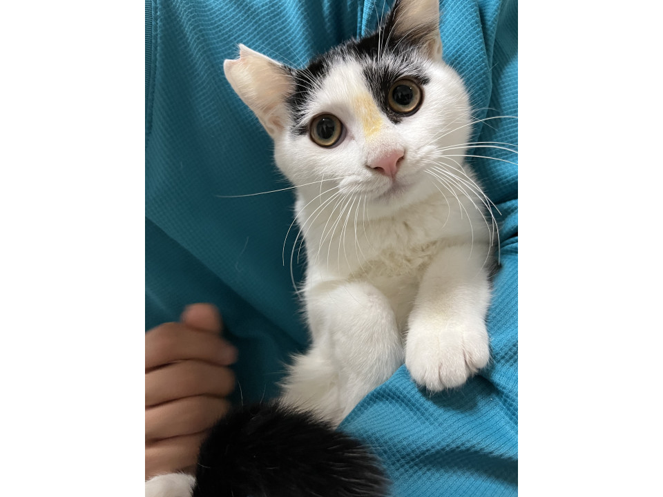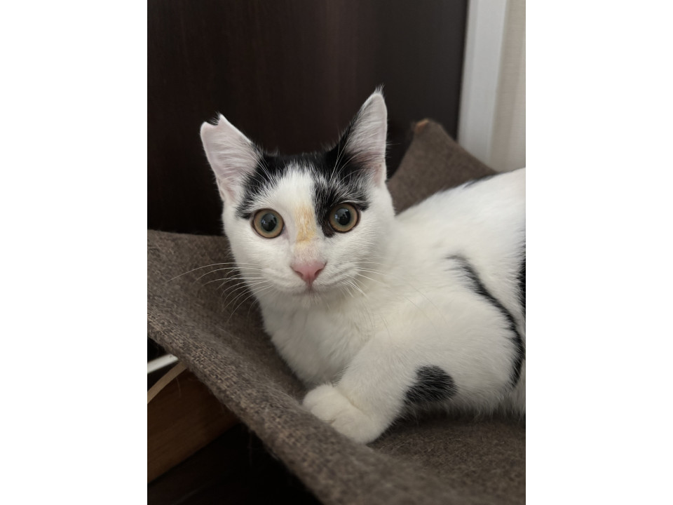 ※鼻の上の黄色は、真菌治療していた時の薬の色です。毛の生え変わりとともに、元の白い毛に戻ります。