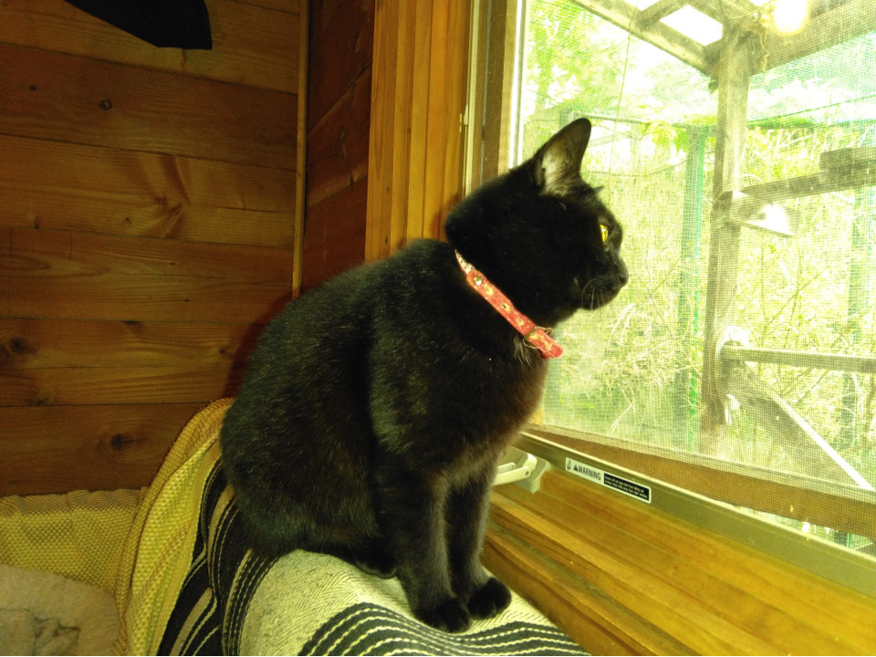 優しく穏やかな性格。人への信頼度が高い。ご飯をあげると食べる前に手にスリスリしてくれます。遺棄されたようですが、それまでは大切にされていたようで、人を怖がりません。