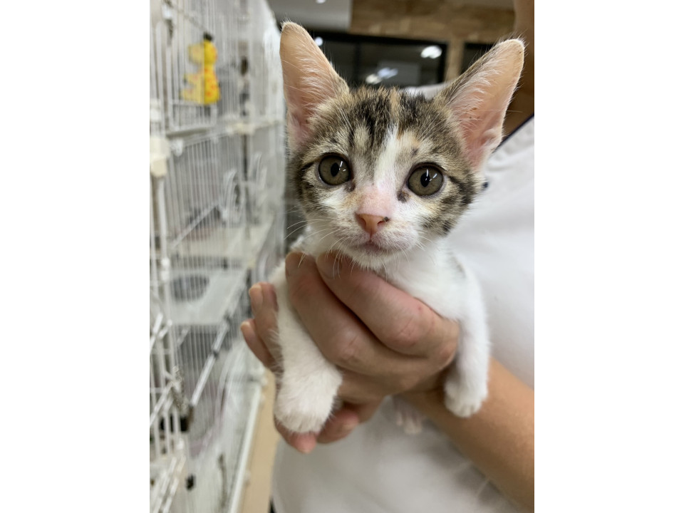 あるお宅の車庫で野良ママが子育てしていたらしく、そのお宅の人が猫好きの隣のお宅へ連れてきて置いて行かれ、ママ猫も見当たらず困り果てて相談があり生後1ヶ月未満でミルクやりも必要だったので引き取る事になりました。