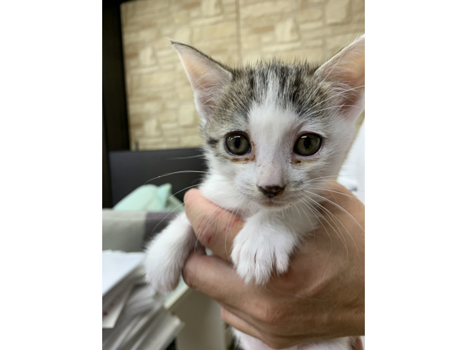 あるお宅の車庫で野良ママが子育てしていたらしく、そのお宅の人が猫好きの隣のお宅へ連れてきて置いて行かれ、ママ猫も見当たらず困り果てて相談があり生後1ヶ月未満でミルクやりも必要だったので引き取る事になりました。