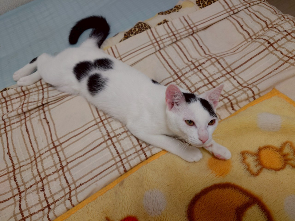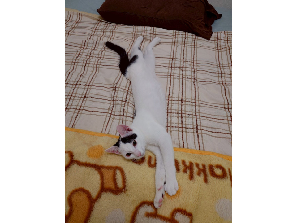 遊びに対してはマイペース。寝る時は身体をピーンと伸ばして寝ます笑