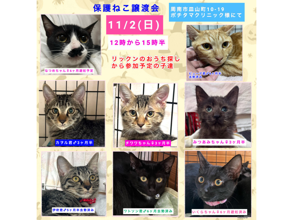譲渡会に参加予定ですが個別のお見合いにも対応します。