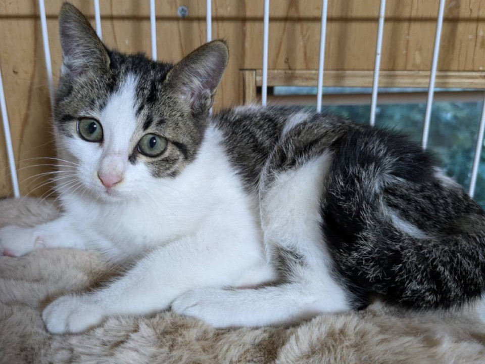 目が綺麗なかわいい子です。保護した時は警戒がありましたが、慣れて来て撫でると気持ちよさそうにします。だんだんと慣れていくと思います。