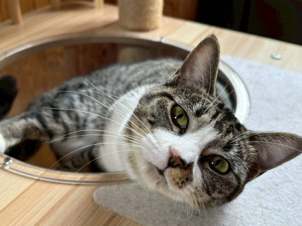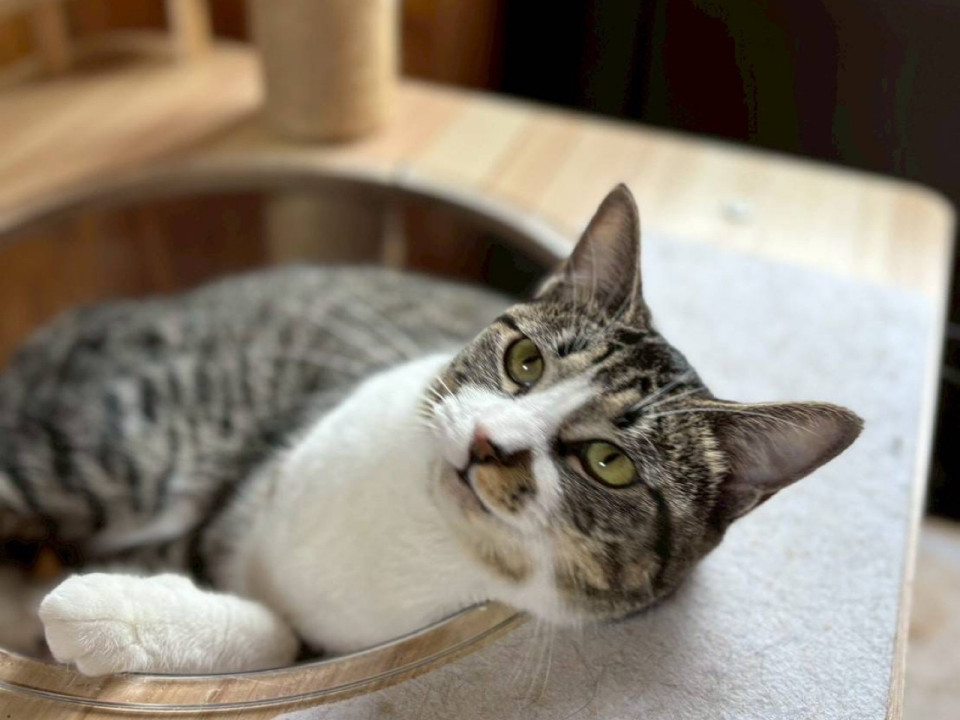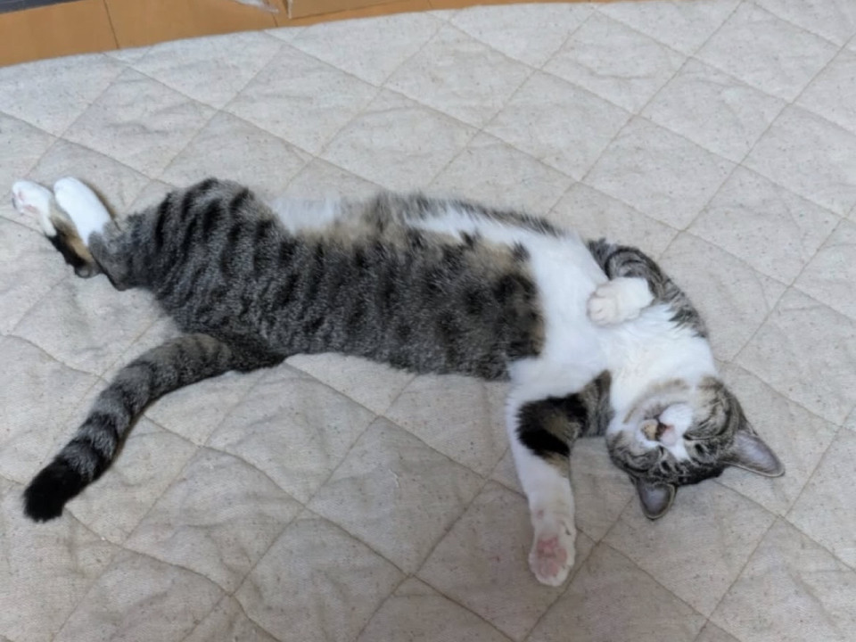 ミルクから育てたので、人大好き、人に触られる事に全く抵抗のない甘えっ子です。人見知りもなく譲渡会でもヘソ天で寛ぐマイペースないい子ちゃんです。子猫の頃に身体が弱かったのですが、今は通院等必要なく元気です。犬猫とも仲良くできます。