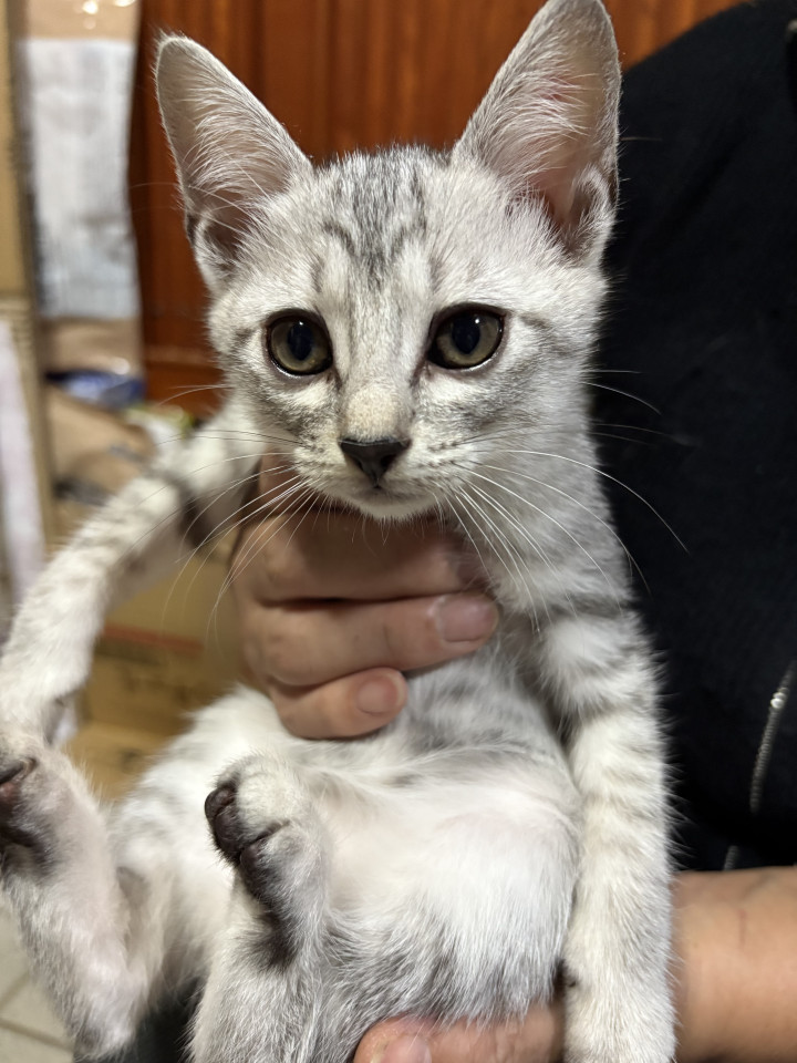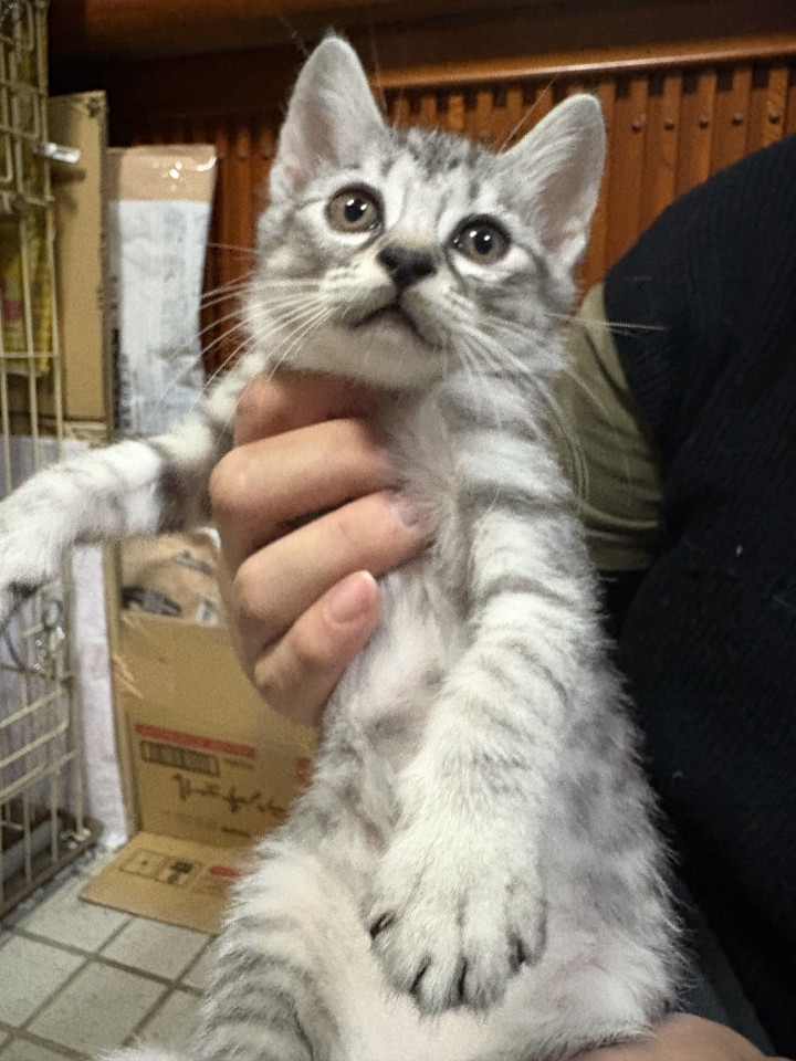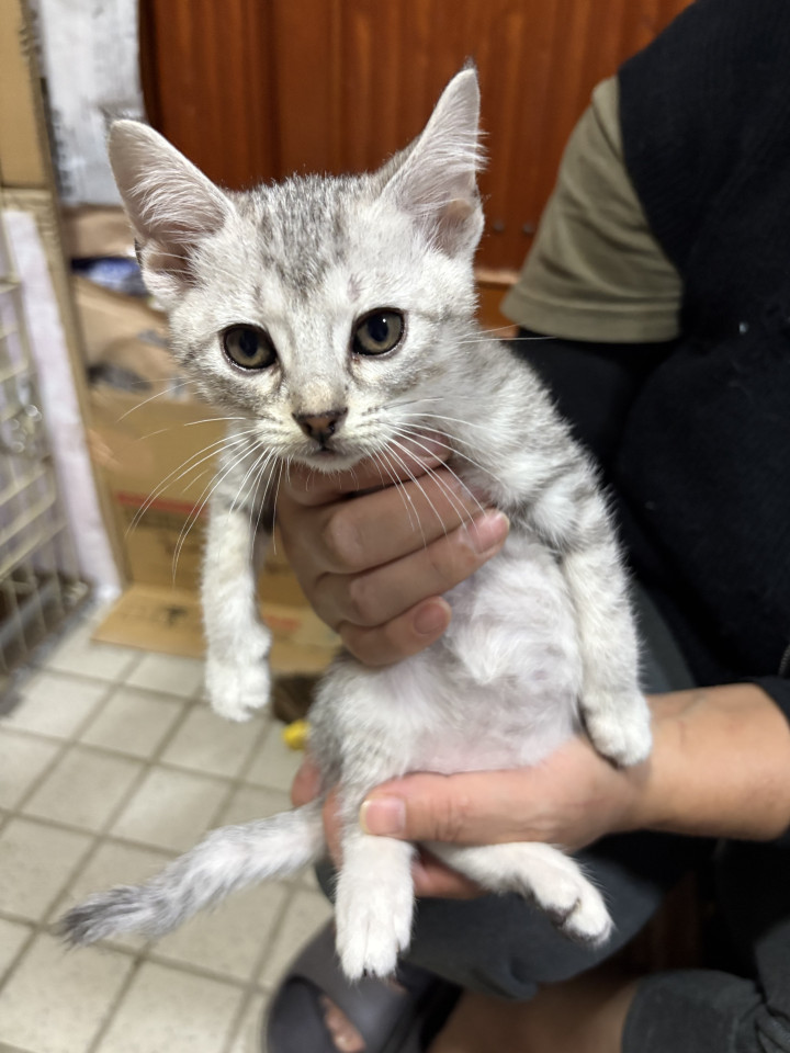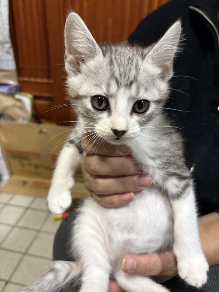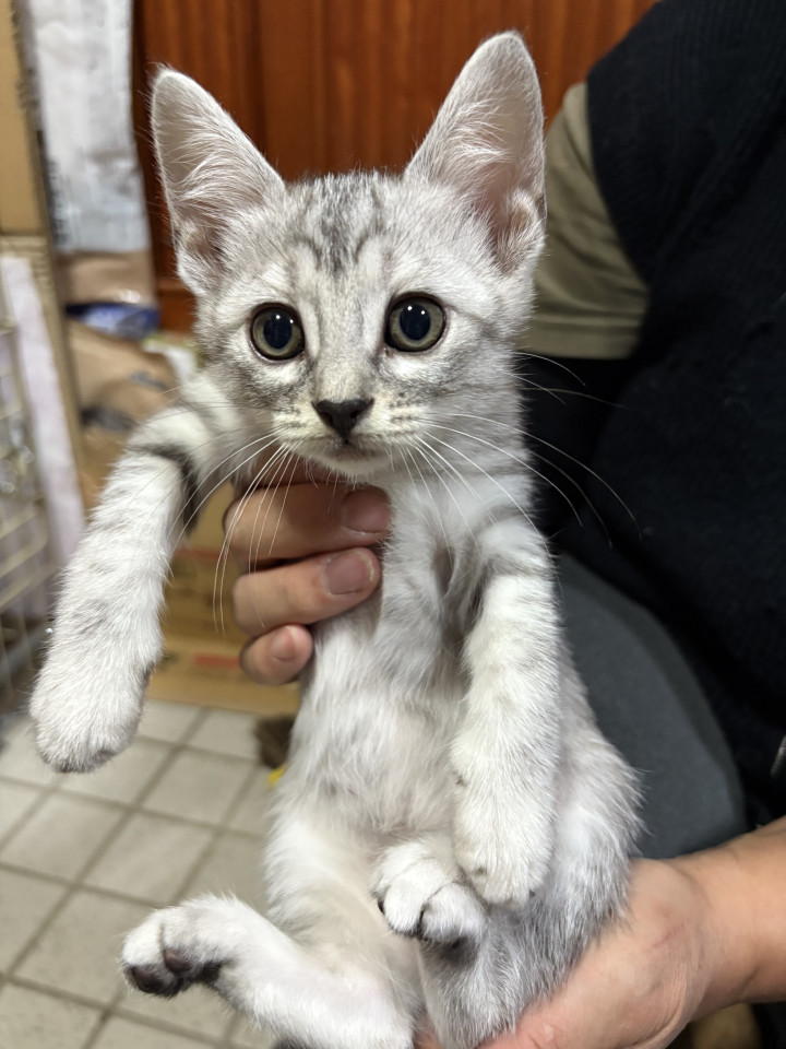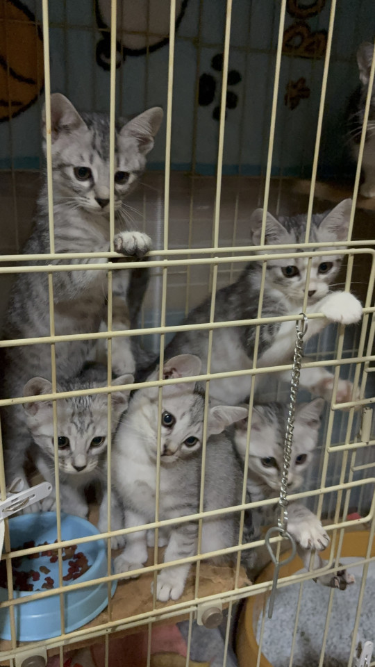 5匹とも活発に猫じゃらしやボールで遊んでいます。小顔なので耳が大きく見えます。紙砂のトイレ使用していますが、今のところ上手に排泄できています。