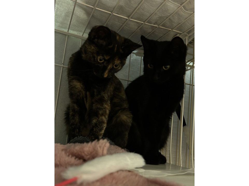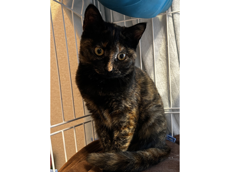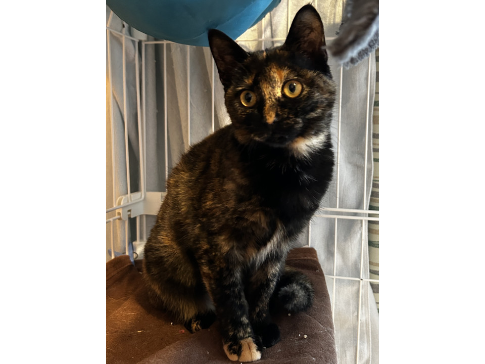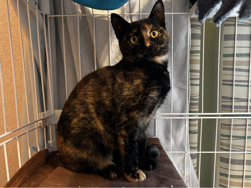 サビ猫の推定4か月齢で、黒猫のちこちゃんとは姉妹となります。