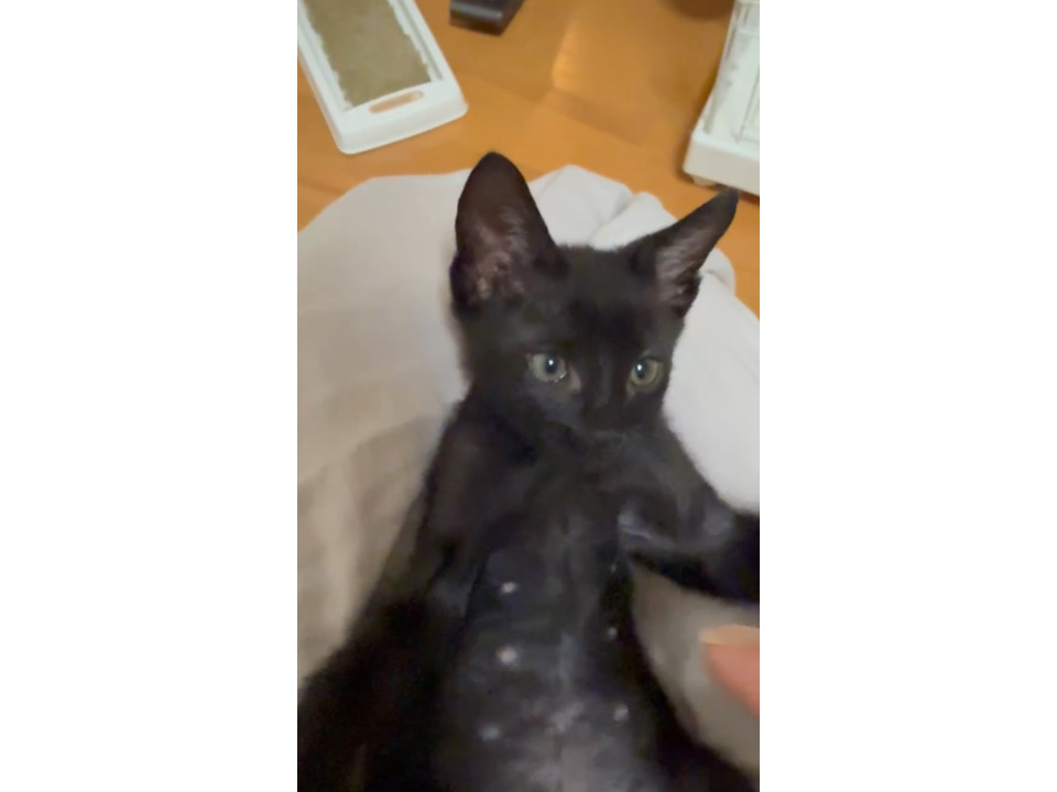 まだまだ赤ちゃん感満載で薄毛の黒猫。