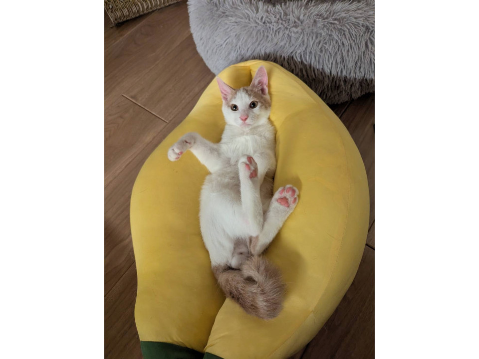 兄妹が少しずつ里親さんが決まり巣立つと寂しくなってしまったのか急にお膝に乗ったり気づいたら隣にいたり甘えてくるようになりました。
