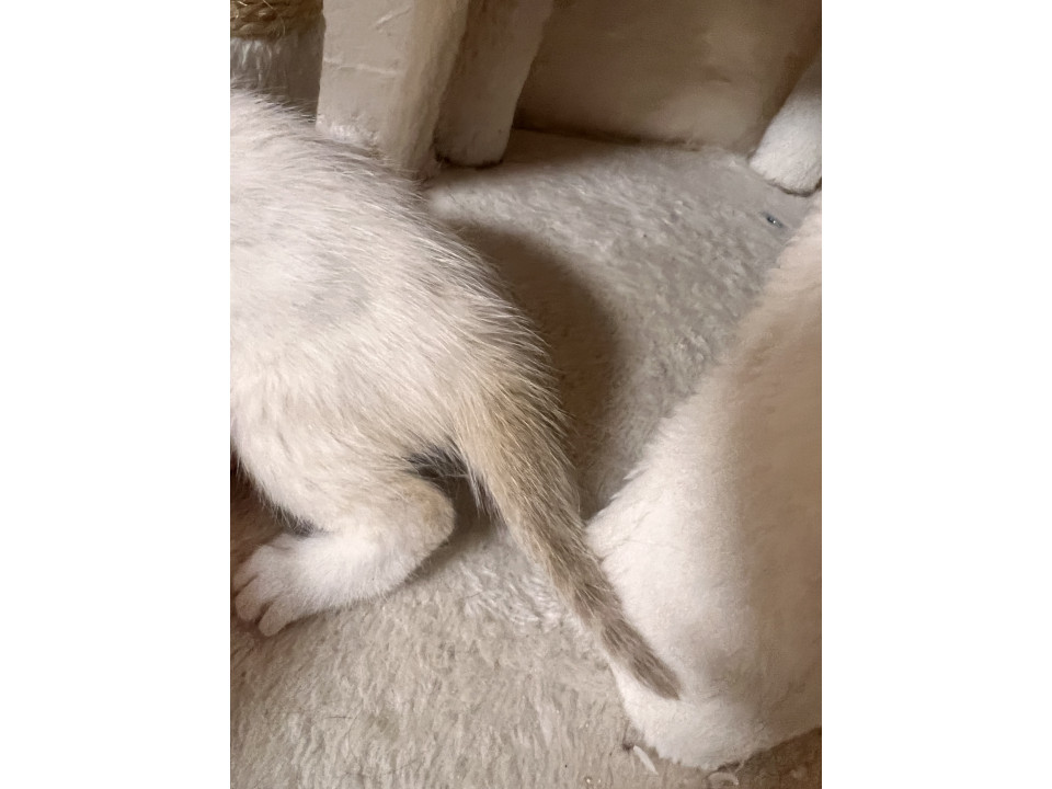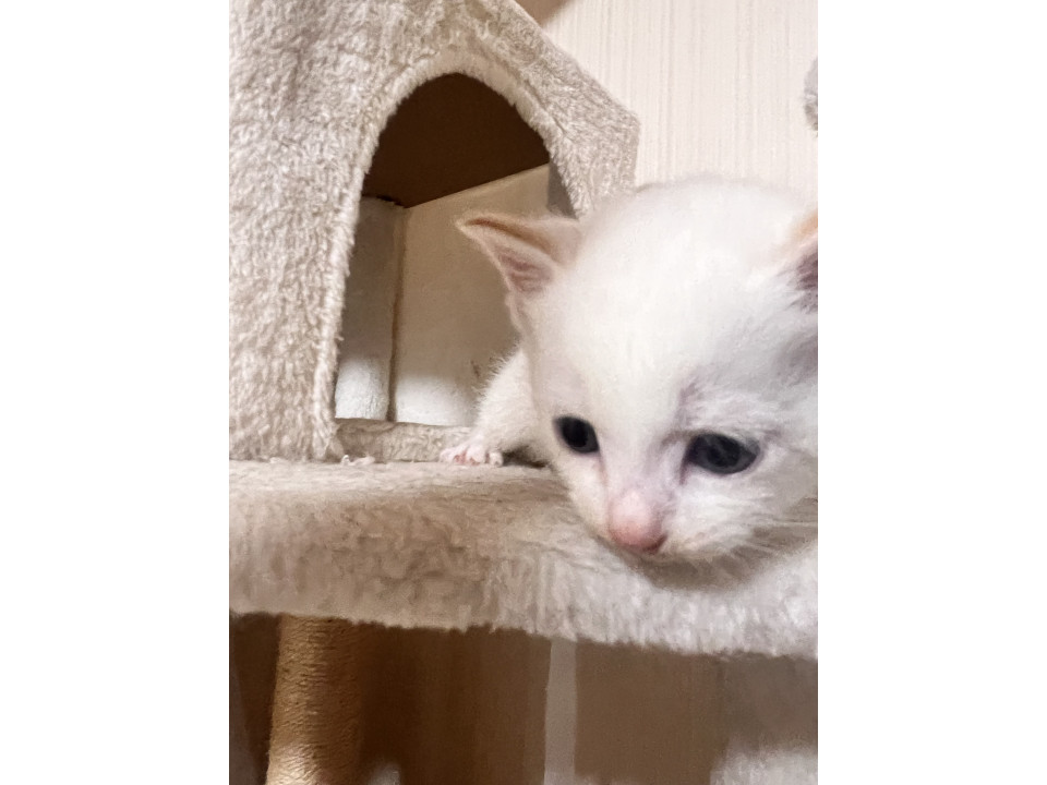 今のところ、クリームっぽい柄もある白猫ちゃんです