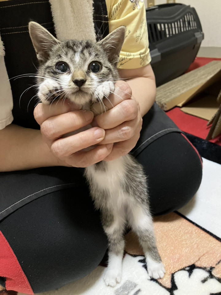 しばらく様子を見ていましたが、親猫が現れることはなく兄弟猫と共に保護しました。