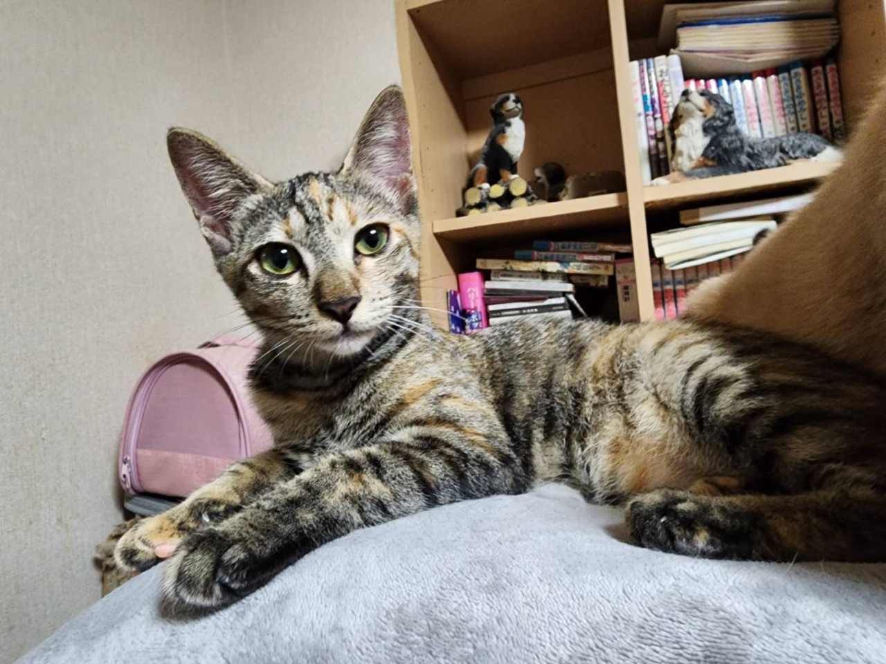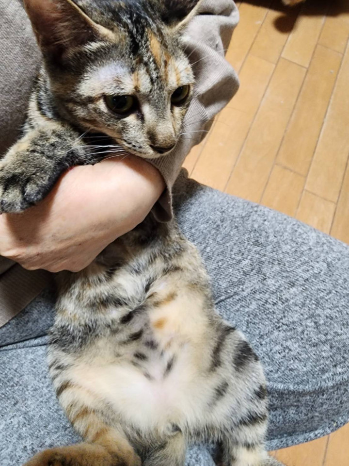 物怖じしないくったくない活発な女の子です。兄妹でも一番人馴れした猫です。気立てが良く面倒見がよい気がします。