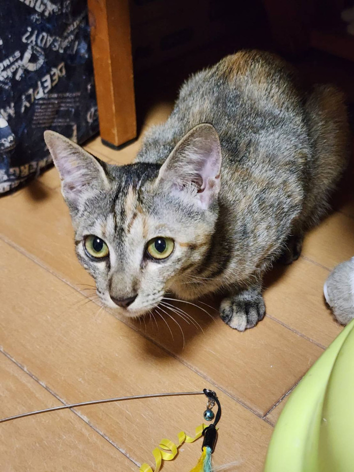 物怖じしないくったくない活発な女の子です。兄妹でも一番人馴れした猫です。気立てが良く面倒見がよい気がします。
