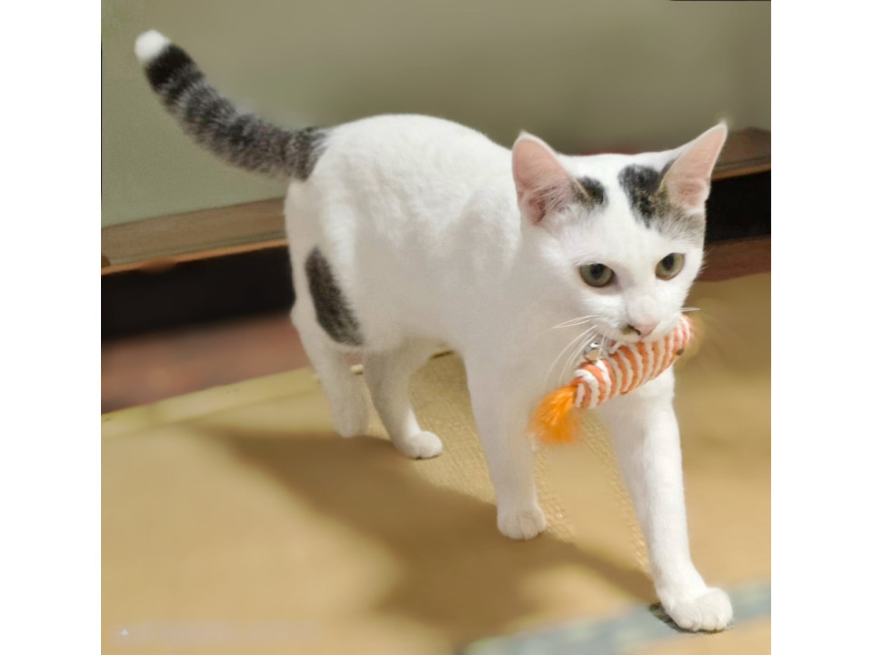 オモチャを投げると咥えて持ってきます!飽きるまで投げてほしいみたいです☆ワンちゃんみたいな猫ちゃんです。