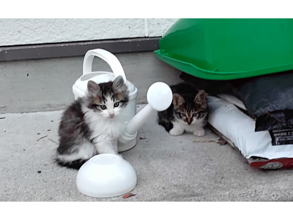 10月の中旬頃にノラの母親猫が、2匹の子猫を我が家の庭に連れてきました。しかし我が家では、腎臓病の老猫を毎日点滴をして看病している為、子猫達を保護出来なく里親さんを募集いたしました。