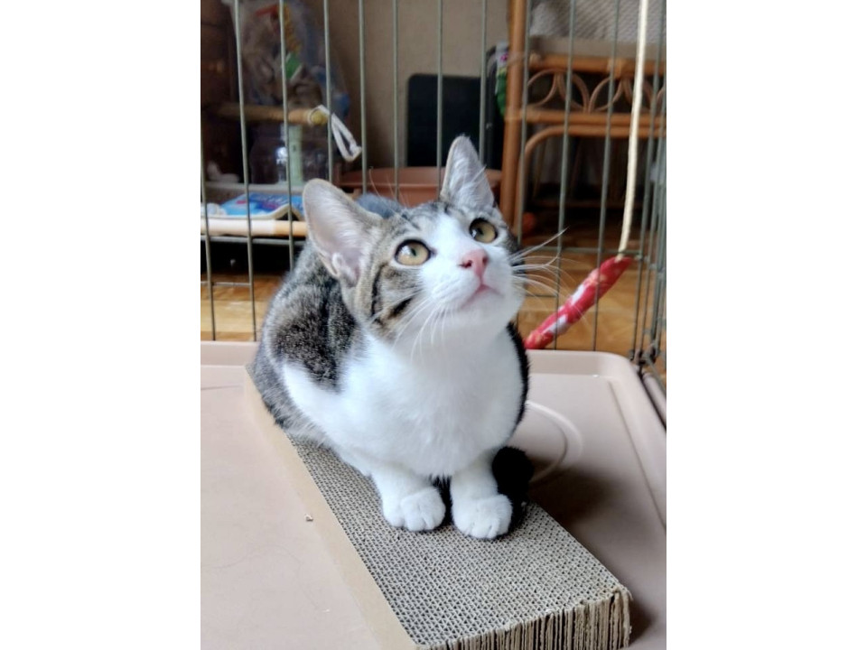 白黒の右耳がパッツンと切られ急遽保護しました 傷は綺麗に完治してます 人間に警戒する事なくスリスリの甘えん坊なので 事故なのか他の動物に噛まれたのか不明です