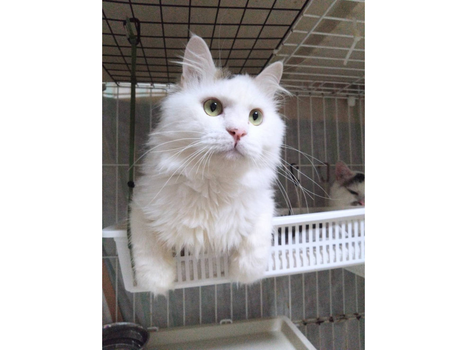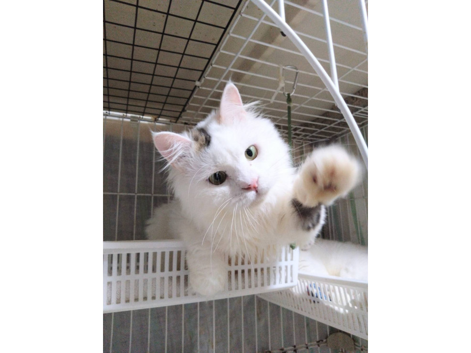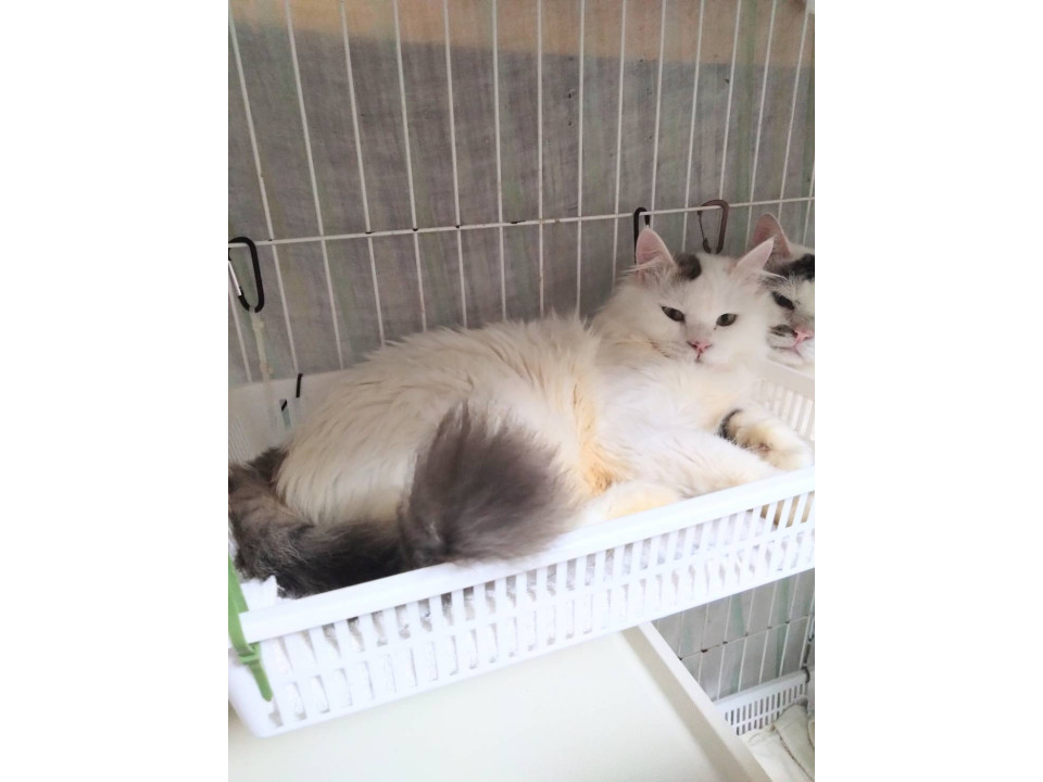 ◯推定2歳くらい(2026年10月下旬時点)の半長毛白キジの男の子です。