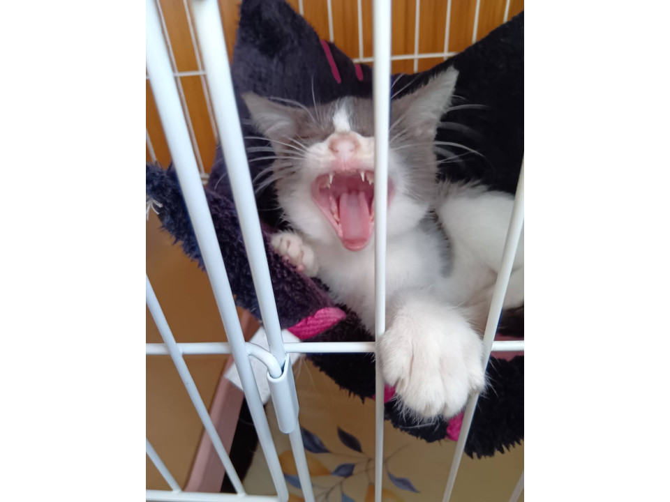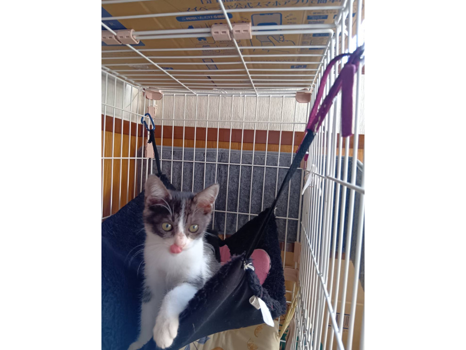 10月14日保護しました。左足骨折しており22日手術予定でしたが白血病が判明し断念しました。ですが骨は固まりつつありキャットタワーにも楽々登ってしまうほど元気に遊んでます。私がアレルギーの為、友人宅でお世話してもらっていますが在住猫ちゃんが数匹居る為、今後お願いすることができません。お引き取りいただける方からのご連絡お待ちしてます。よろしくお願いします。