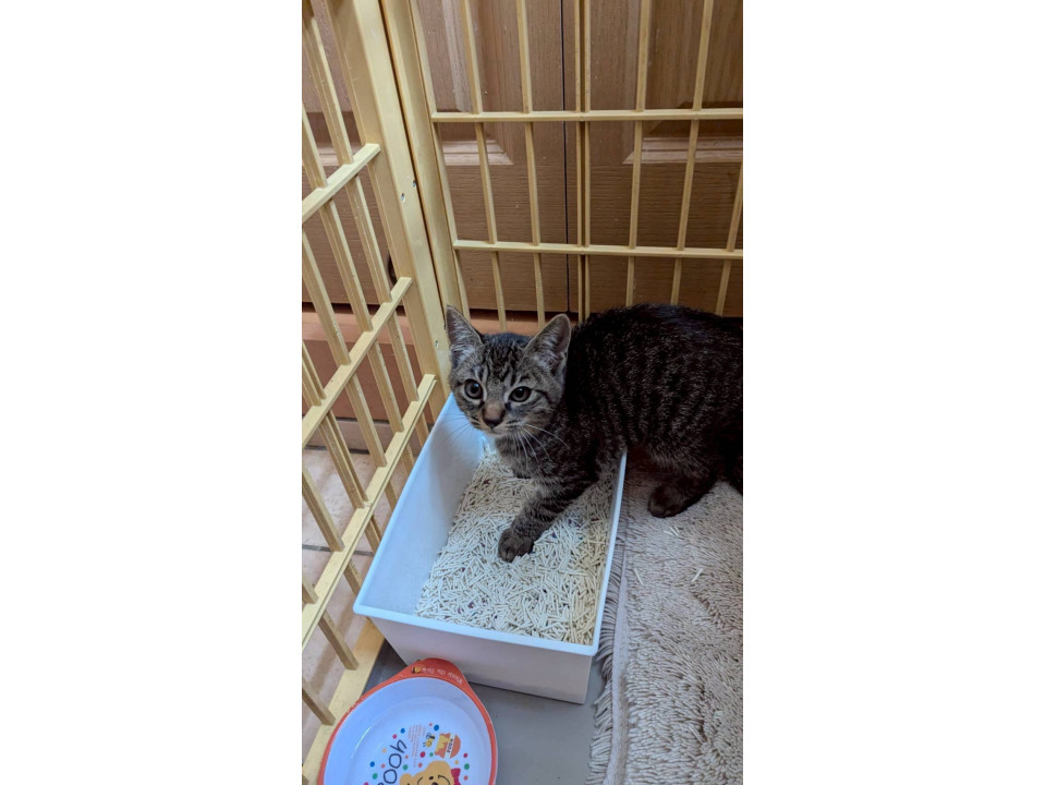 ノラネコが繁殖している所の猫を捕獲して手術するTNR活動中、そこに仔猫が2匹居ました。外の生活は仔猫には体力的に厳しい。また、慣らして家族を探してあげたいと保護しました。