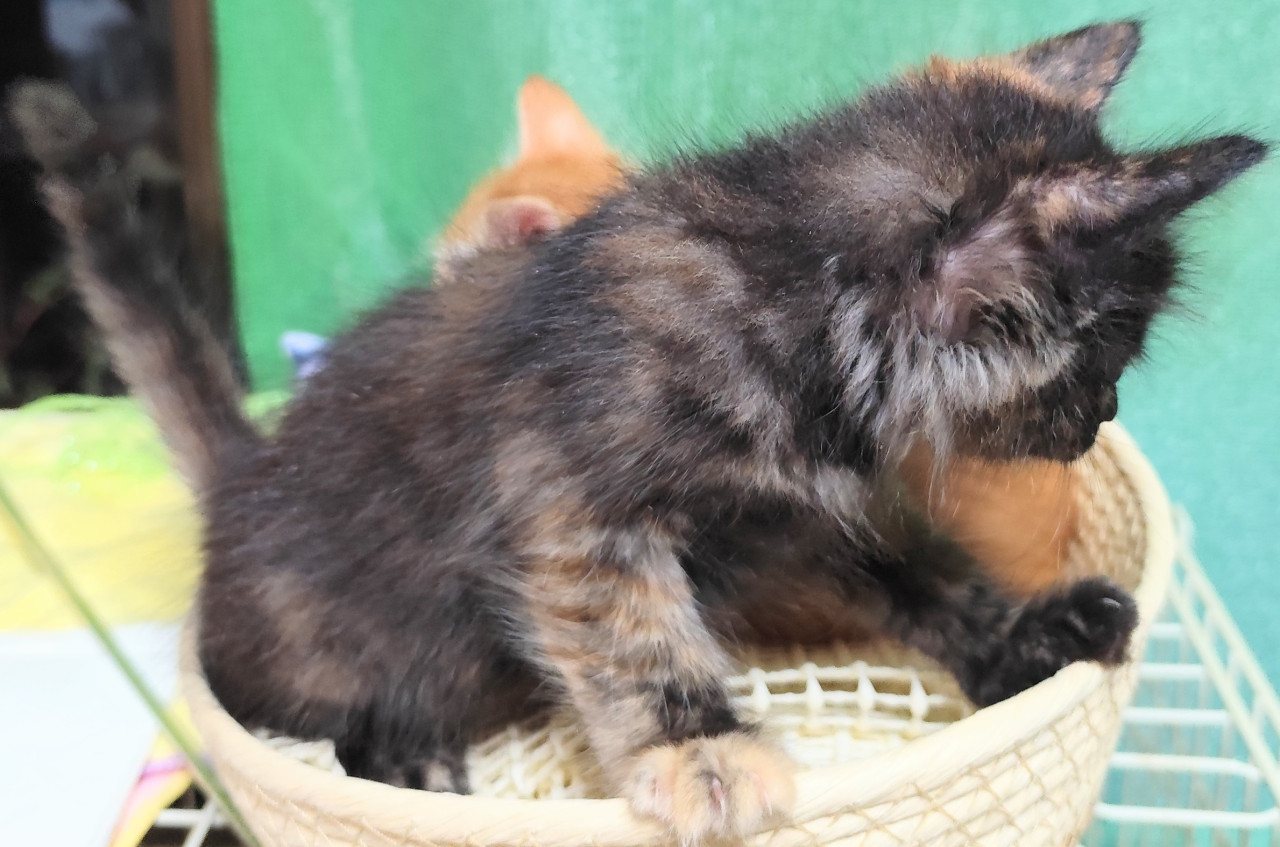 保護当事は視界に入ればゴロゴロでしたが、今は色んなものが気になって抱っこどころではないらしく、猫同士で遊んだり何にでも興味を示して動きまわっています✨
