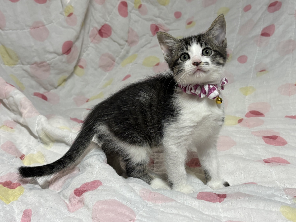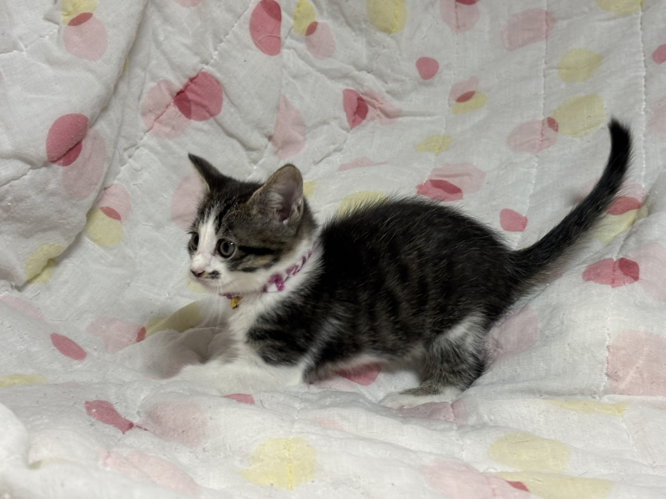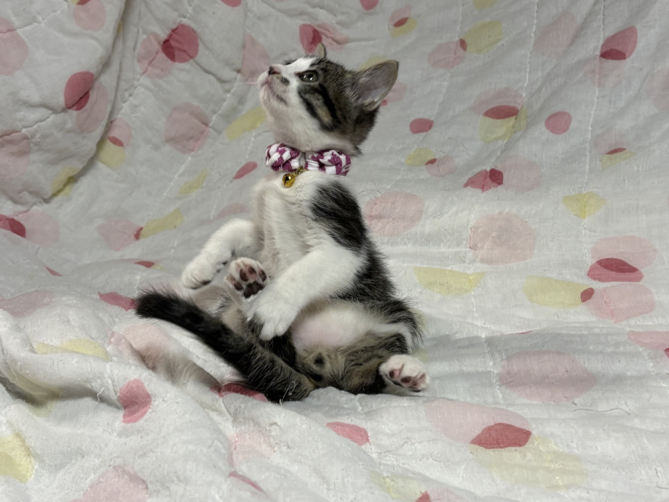 生後2ヶ月半から3ヶ月の女の子。三種ワクチン接種一回目済み、バイコックス予備駆虫済み、ドロンタール予備駆虫投薬済み、ブラベクト滴下済み、検便済み、猫免疫不全・白血病共に陰性