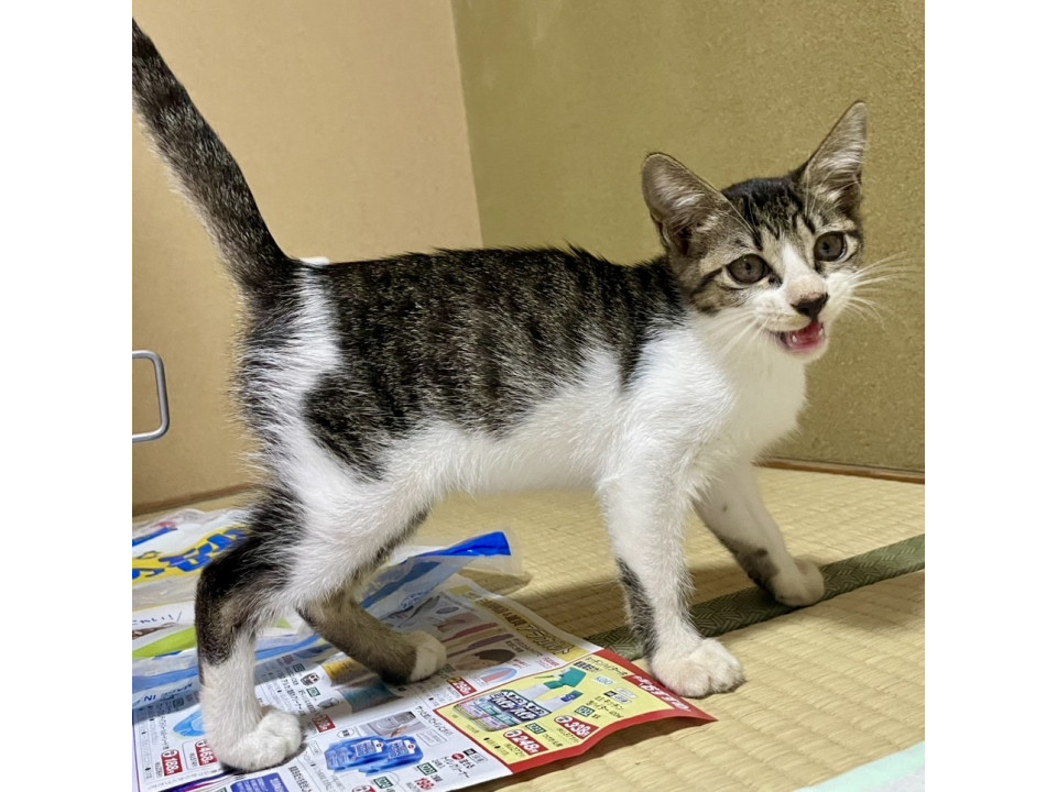 藪の中で1匹で鳴いており、母猫が現れなかったため保護しました。他にも保護猫がいるため里親さんを募集します。