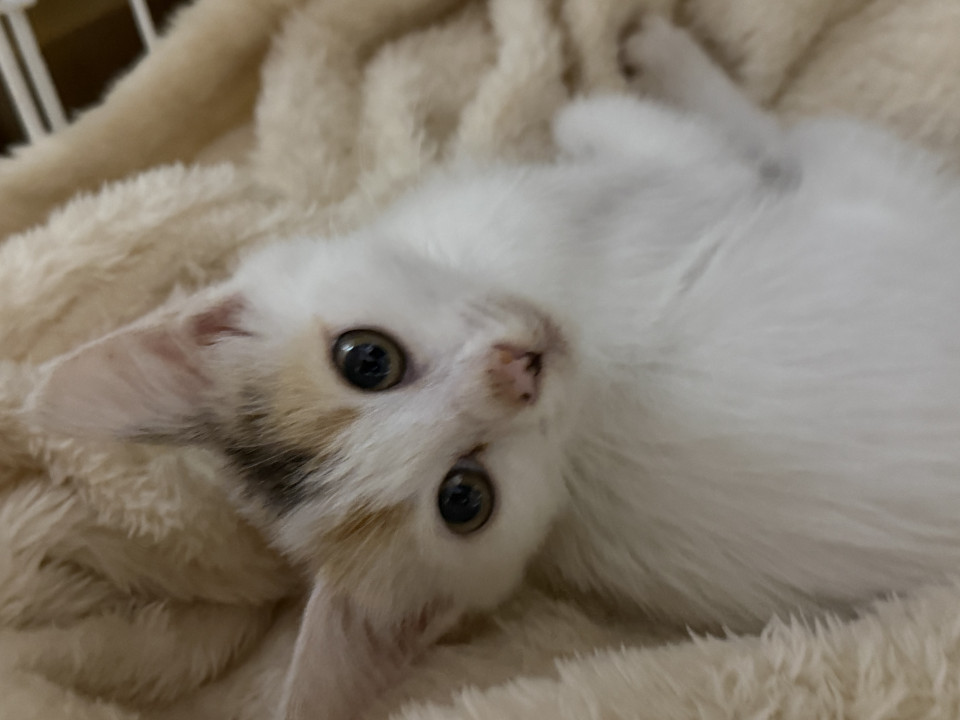 近所の畑に突然現れて、大変おなかを空かせていたので、ごはんをあげて、そのまま保護しました。