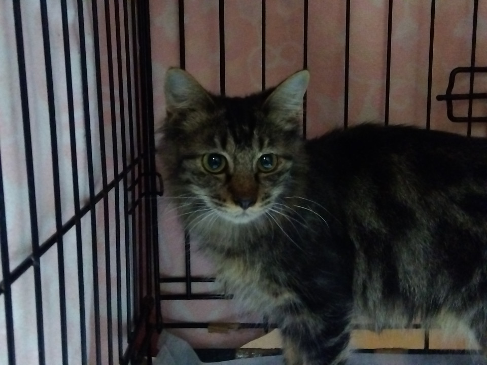 長毛でアメショー柄のMIX猫です。
