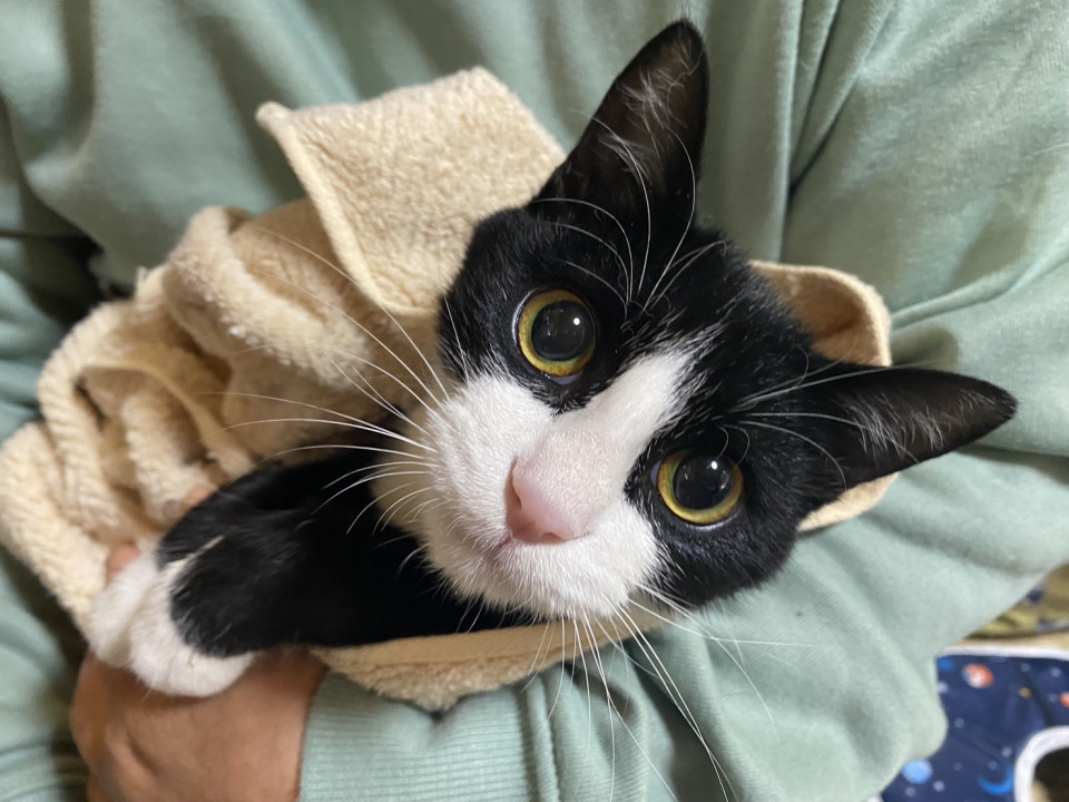 TNR現場に遺棄されたのか突然現れました。子猫のため保護しました。