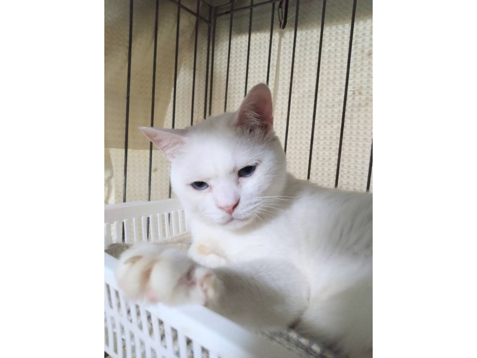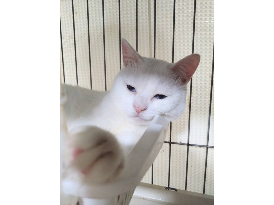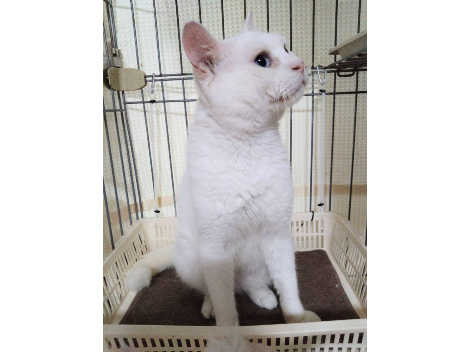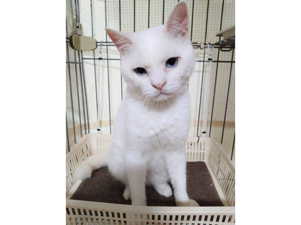 ◯推定3-4歳くらい(2026年10月下旬時点)のブルーアイ白猫の男の子です。