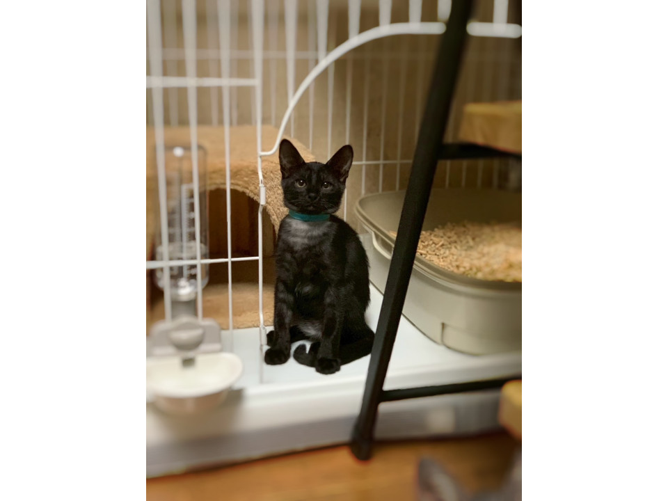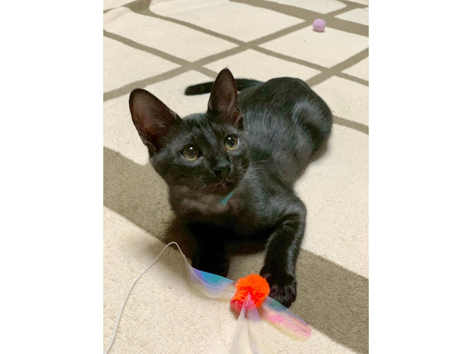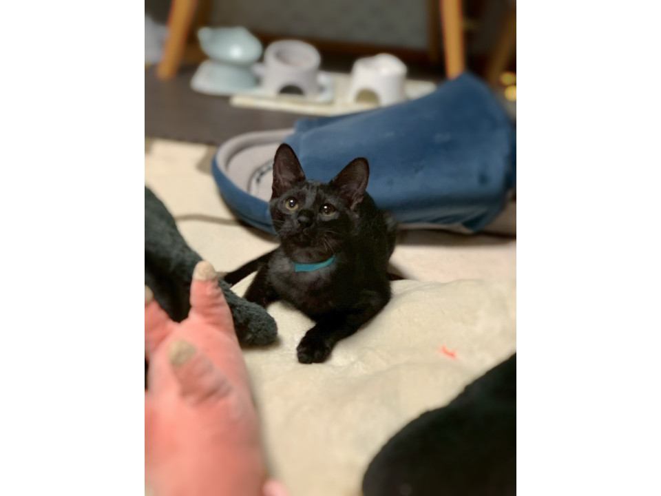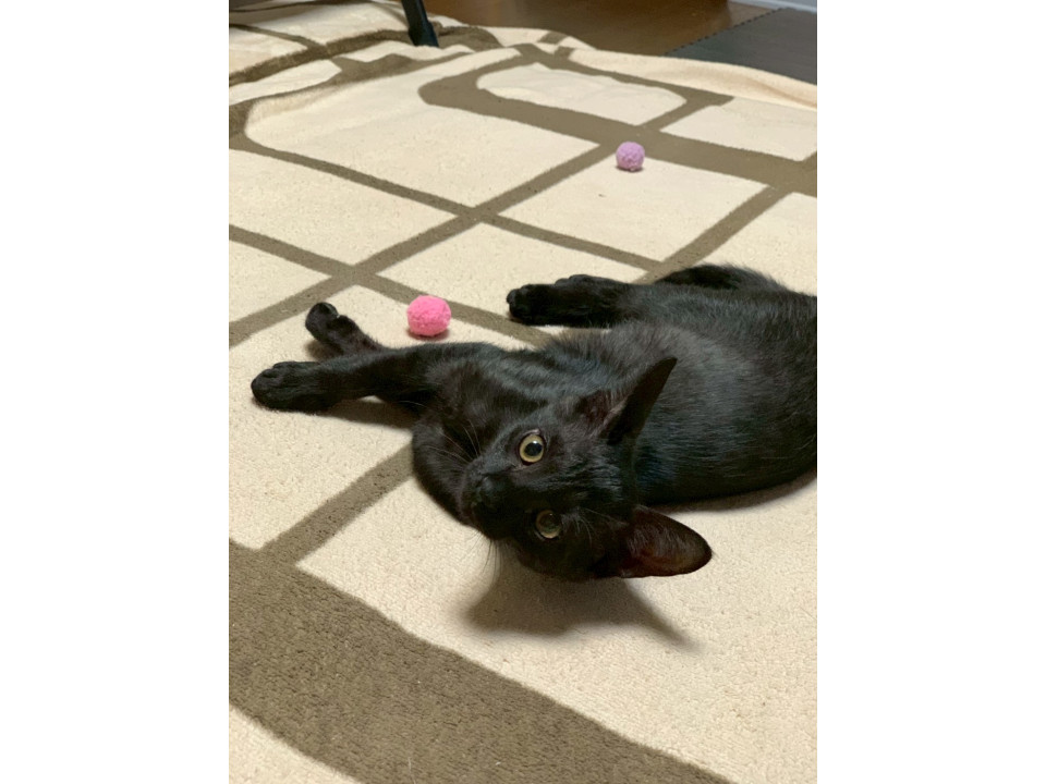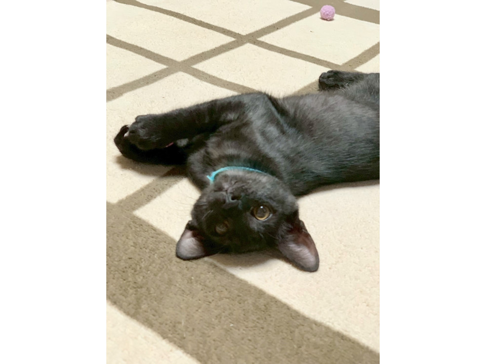 ブラックスモークの毛並みがつやつや輝く、兄妹の中でいちばん小柄な男の子♡