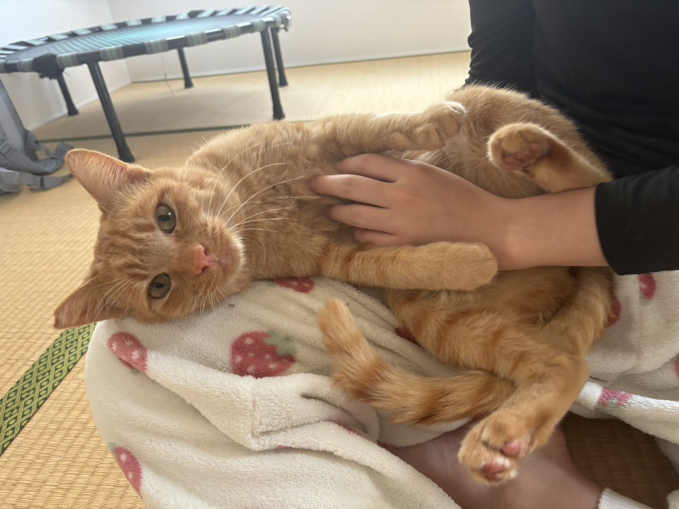 すぐに慣れてお膝の上に乗ってゴロゴロします。遊ぶの大好きです!