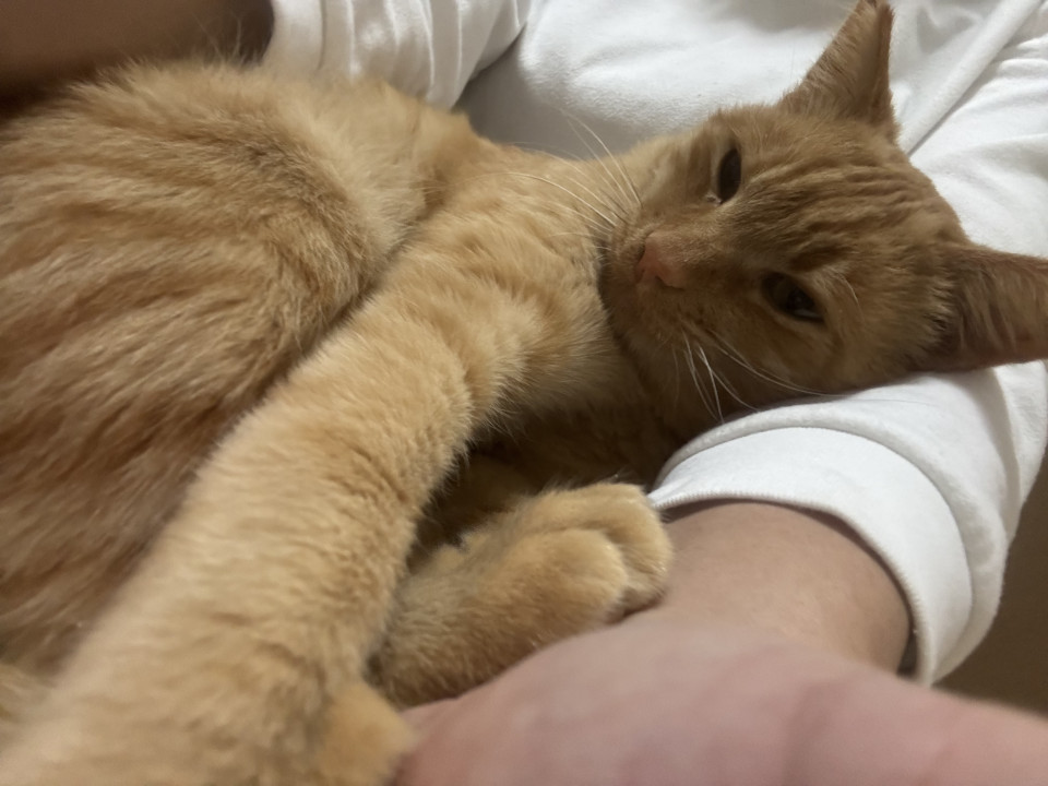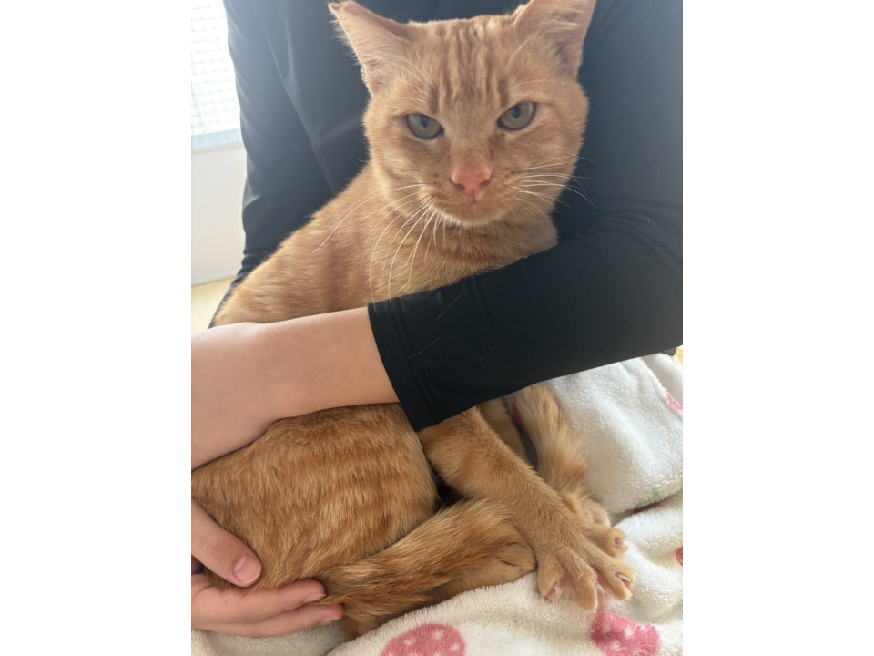 推定1歳くらいのお話大好き超甘えん坊な茶トラの男の子です。