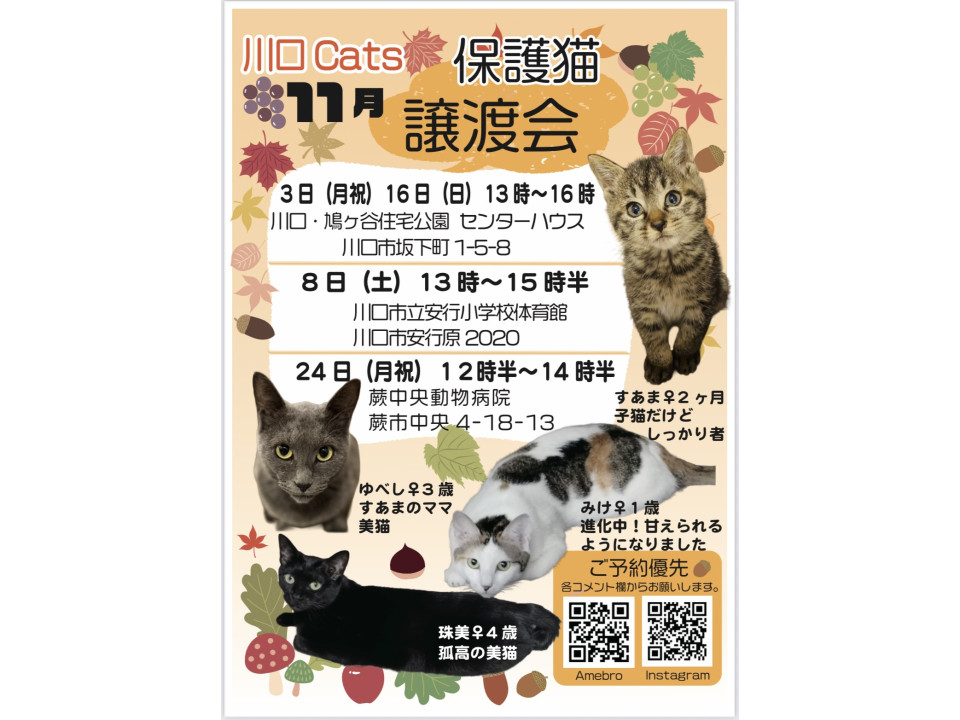 □11月16日 川口鳩ヶ谷住宅公園センターハウス 譲渡会に参加します。