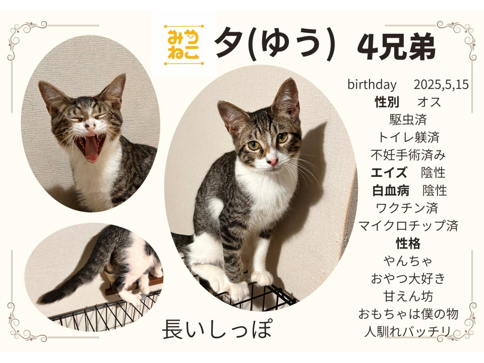 4・・・トライアルは猫がお家に慣れるかの制度で里親様が飼えるか判断する為の制度でないことをご了承下さい。